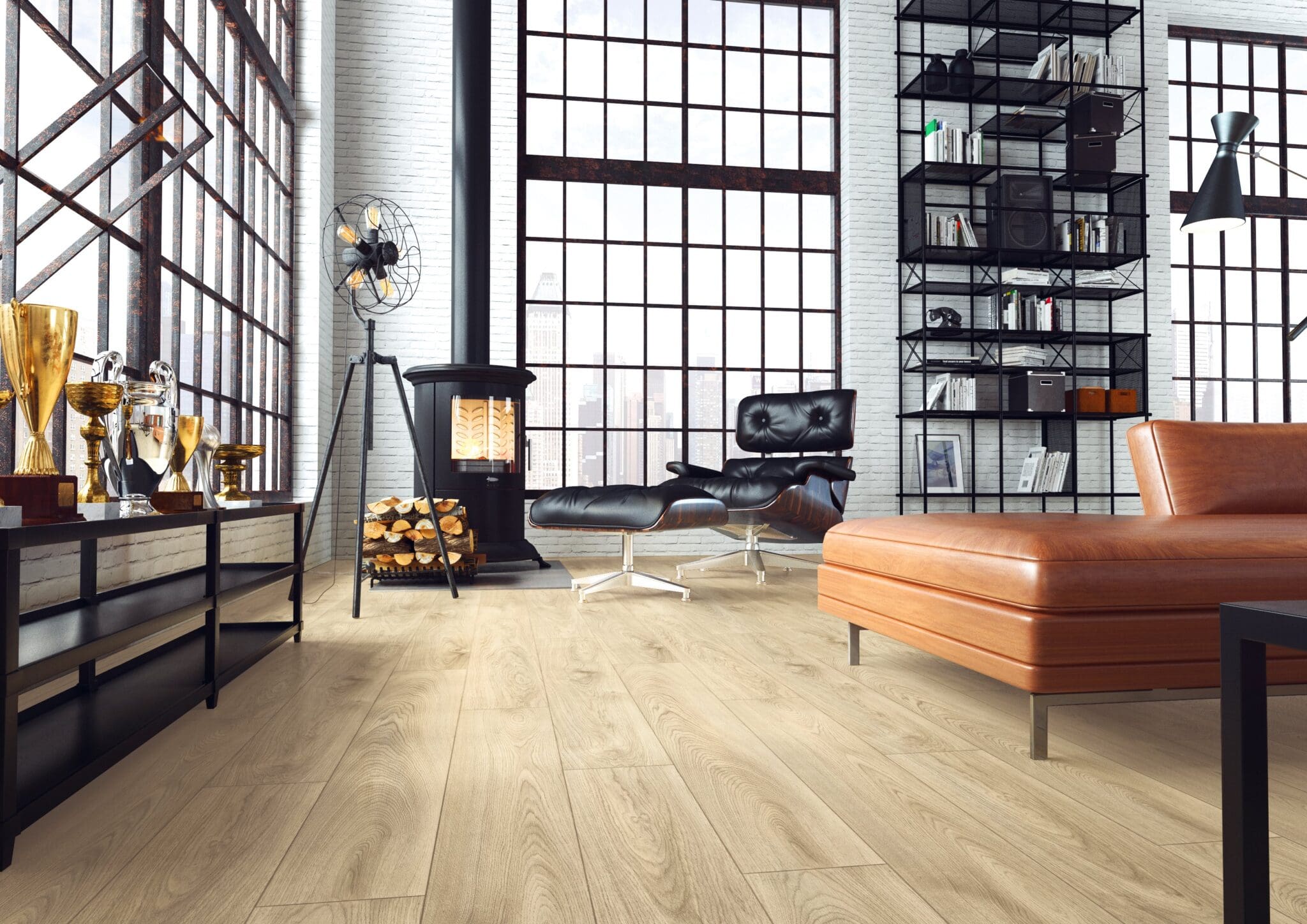 Modern floors with a delicate wood texture. Ideal for Scandinavian and minimalistic interiors. The King Floor range is Kronopols thickest, most sturdy board at 12mm thick, it is the best laminate around for matching heights within a renovation or for peace of mind when laying a laminate flooring downstairs as it has an AC5 grading. Now with a water-resistant core, this flooring has gotten even better !